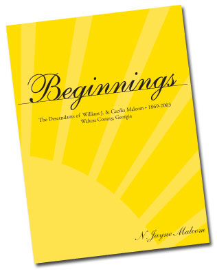 The second edition of Beginnings. An 8 1/2″ x 11″ hard bound book on the history of the Malcom family. The book has over 500 pages and contains three main sections: